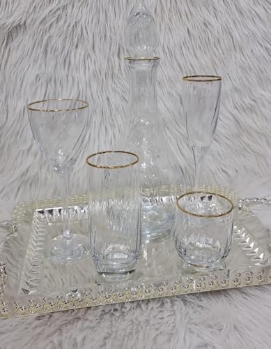 Generic - طقم اكواب زجاجية 26 قطعة من مادهب باشابهشة، شفاف وذهبي