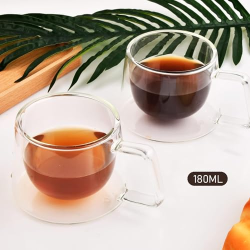 Generic - كوب زجاجي شفاف للمشروبات الساخنة والباردة مصمم بشكل جميل للشرب وتقديم المشروبات (250 مل، قطعة واحدة)