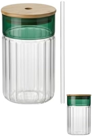 Generic - Glass Cups with Lids and Straws Set of 1, 500 ml - Drinking Glasses with Bamboo Lids and Glass Straws - Tumbler for Iced Coffee, Tea - Aesthetic Home Essentials