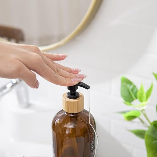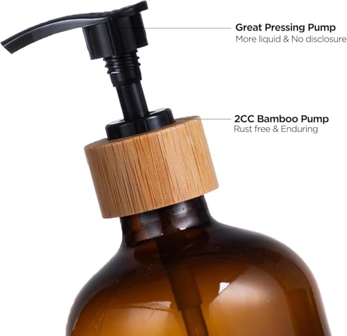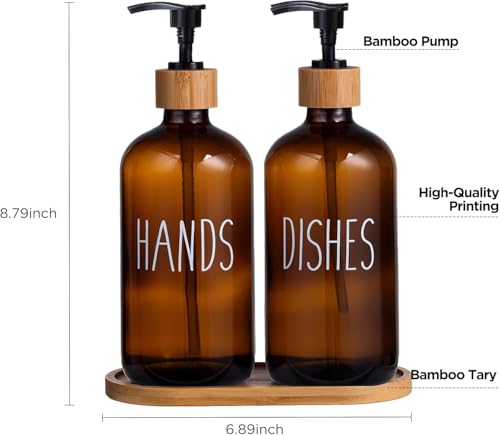 - 【جودة عالية】موزع صابون الأطباق للمطبخ مصنوع من الزجاج، بمضخة وصينية من الخيزران، لا يصدأ وقابل لإعادة التعبئة ومتين وسهل الضغط، كما أن هذه المضخة يسهل ضغطها. لا يعلق الصابون على جانبيه.