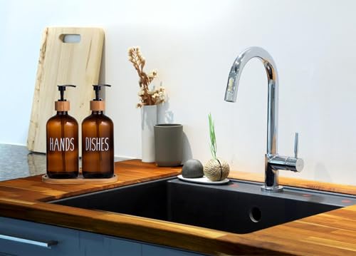 - 【تحديد سهل وملصق مقاوم للماء】لن يخلط ضيوفك بين صابون اليدين وصابون الأطباق بفضل استخدام طقم موزع صابون المطبخ المزود بملصقات هذا. الكتابة الأنيقة المطبوعة بالشاشة الحريرية لن تتقشر مثل الملصقات الورقية، لذلك لن تقلق بشأن انفصال الملصقات.