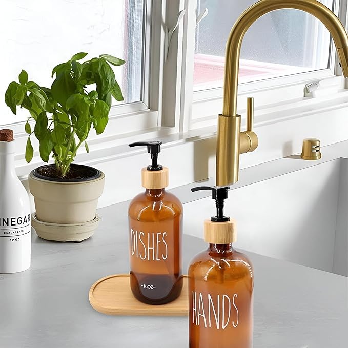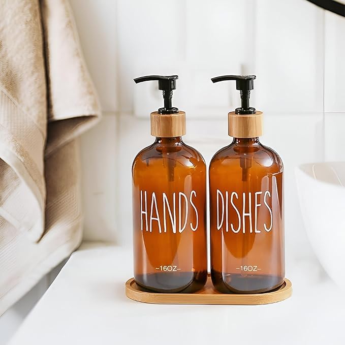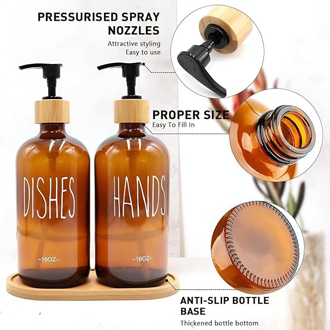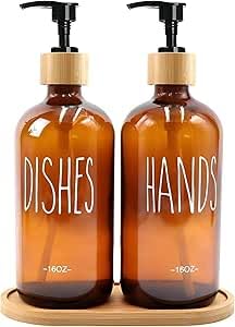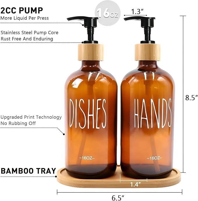 - مجموعة عملية: زجاجتان زجاجيتان سعة 16 أونصة مع موزعات مضخة متينة، تحمل علامة واضحة للأطباق والأيدي للحفاظ على التخزين المنظم