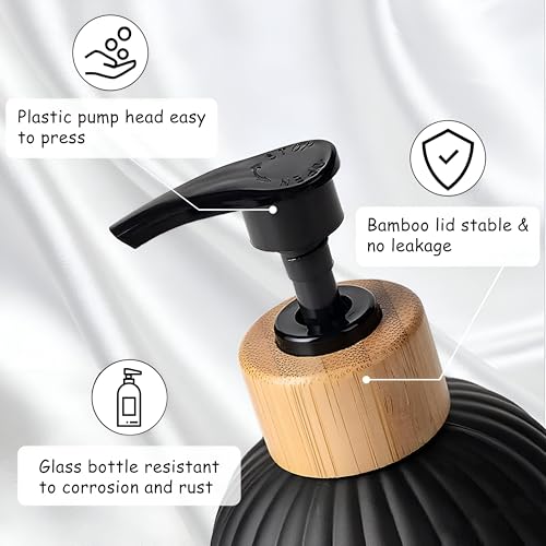- تتضمن مجموعة موزع الصابون الزجاجي المكونة من 2 قطعة موزعين سعة 400 مل يعرضان تصميمًا أنيقًا مع توفير سعة كبيرة لسوائلك المفضلة. تتميز الزجاجات الأنيقة بمضخات من الخيزران، ما يضفي لمسة راقية على ديكور منزلك. مصحوبة بصينية خشبية أنيقة، هذه المجموعة مثالية لرفع جمال مطبخك أو حمامك، وتكمل أي ديكورات داخلية ريفية أو على طراز منزل المزرعة بشكل جميل.