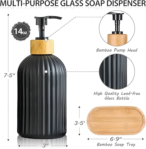 Generic - موزع زجاجي - مجموعة موزع صابون المطبخ اليجانت سعة 392 مل مع صينية خشبية للحمامات الأنيقة والمطابخ الحديثة
