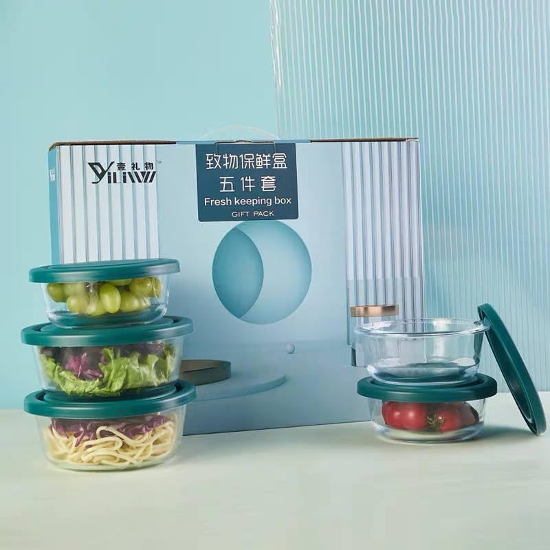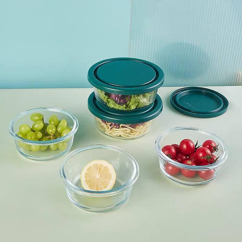 Generic - Glass Food Storage Containers Set, 5-Piece Round Containers with Teal Lids, Microwave and Oven Safe