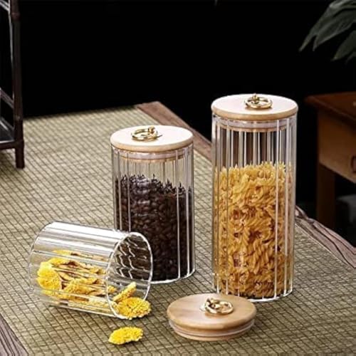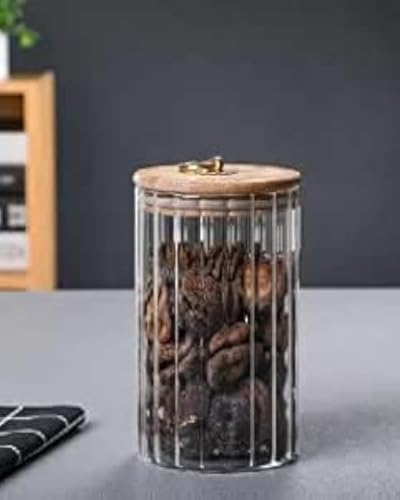 Generic - Glass Jar With Wooden Lid With Metal Grommet And Sealed Decorative Coffee Container with Airtight Bamboo Lid Metal Ring for Home Kitchen Storing Candy, Cookie, Pasta, Nuts, Oatmeal (Medium)