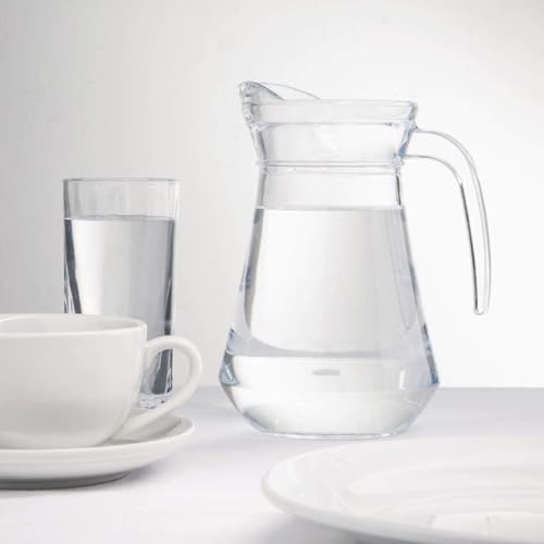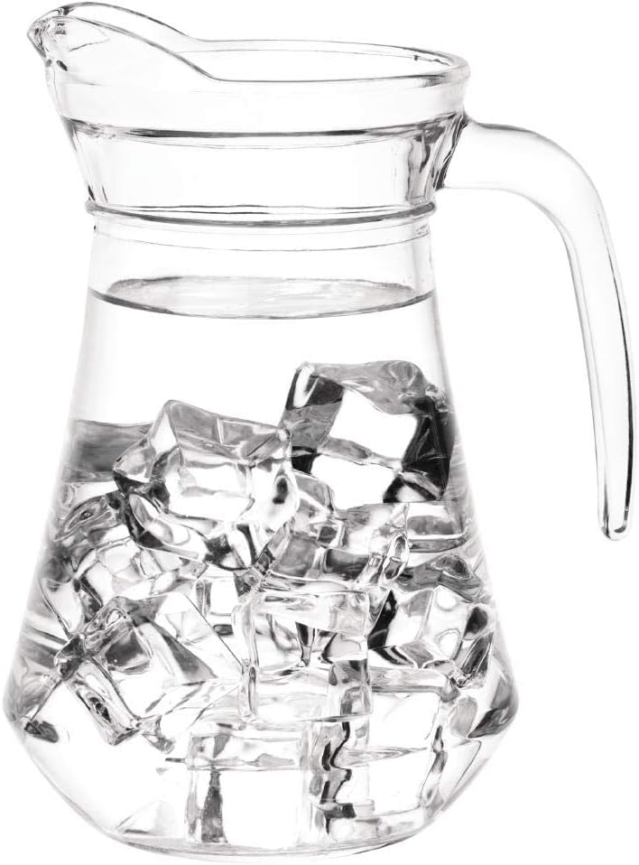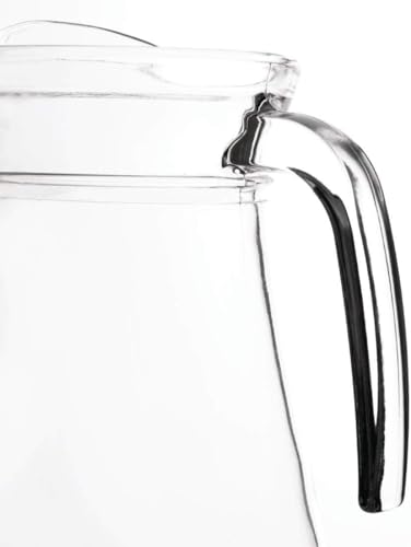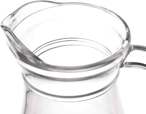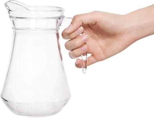 - عبوة واحدة. إبريق زجاجي جميل ومتين مع غطاء بلاستيكي جديد آمن ومقبض وفوهة - أنيق وأنيق، إبريق للمشروبات الباردة - متين وآمن وخالي من BPA. آمنة للاستخدام في غسالة الأطباق. غطاء في الرف العلوي.
