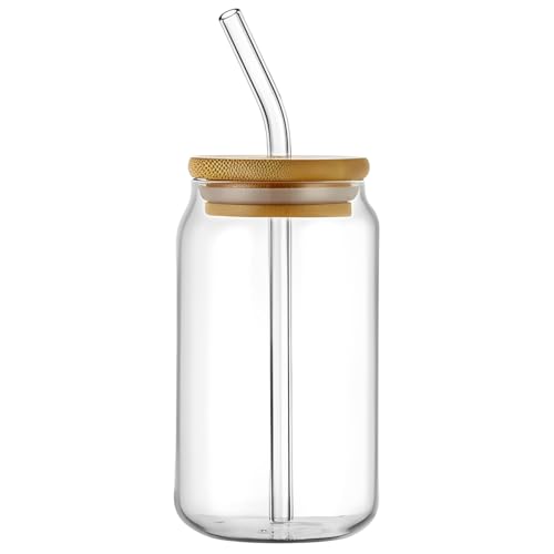 Generic - Glass Juice Mug with Lid and Straw – 500ml Reusable Drinking Cup with Wooden Cover – Smoothie Tumbler for Iced Coffee, Tea, Milkshakes, Cold Beverages – Durable, Leakproof Design for Home, Office