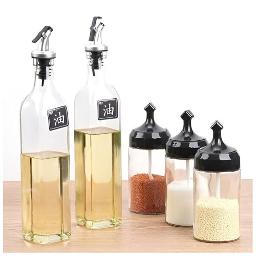 - Made from high-quality glass, this set not only looks great on a kitchen table, but also durable and abrasion resistant. The transparent design allows you to easily see the contents, ensuring your favorite oils and spices are never out of use.