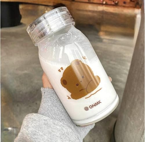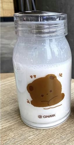- DESIGN FEATURES: Glass bottle with cute bear cartoon design and GNMK branding, perfect for storing beverages and milk