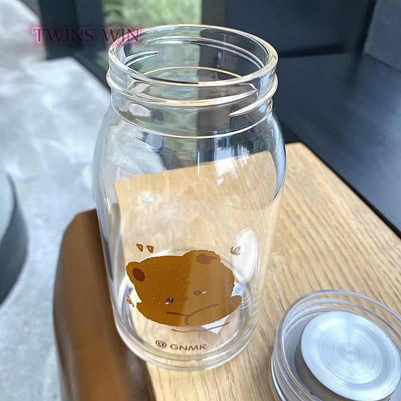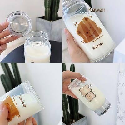 Generic - Glass Milk Bottle, 500ml Capacity, Cute Bear Design, Airtight Metal Lid