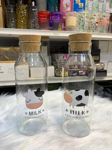 - 1)Design: Elegant Lovely Cow Pattern Glass Milk Bottle, Perfect For Everyday Use