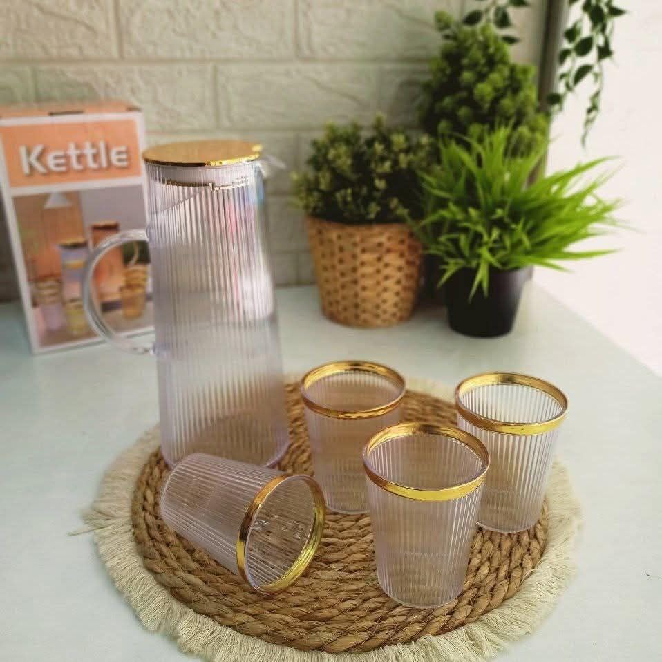 Generic - Glass Pitcher and Drinking Glasses Set, Vertical Ribbed Design, 5 Pieces
