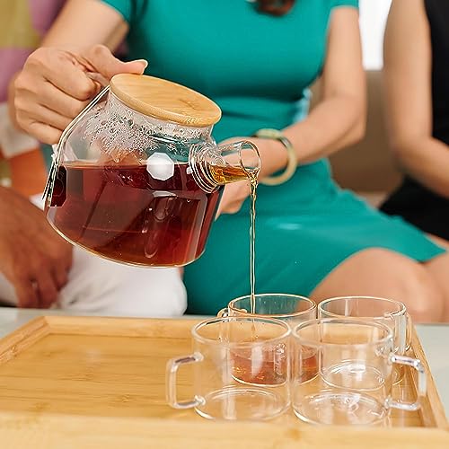 - [Natural Bamboo Lid with Soft Seal]:Our glass tea pot with a natural bamboo lid featuring a soft seal for a perfectly brewed cup of tea every time.The bamboo lid not only adds a touch of elegance to your tea time but also serves as a natural insulator, keeping your tea hot for longer periods.