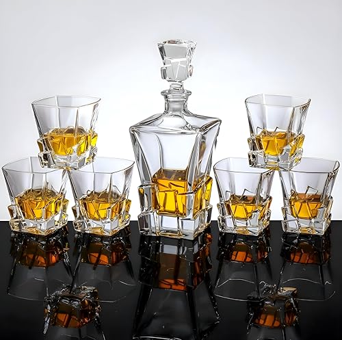 Generic - طقم تقديم زجاجي سعة 750 مل مع ستة اكواب بتصميم خاص، مثالي للمشروبات الساخنة او الباردة، المشروبات الغازية والمنعشة، متين ومقاوم للحرارة
