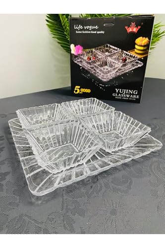 - Unique Design: 5-section glass plate with elegant engraved pattern, perfect for serving appetizers and desserts