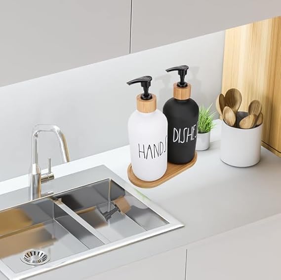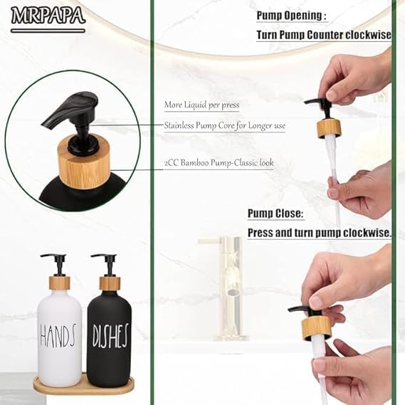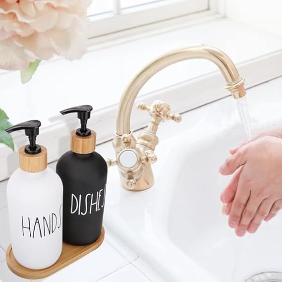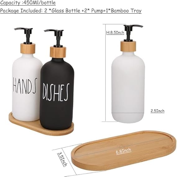 Generic - Glass Soap Dispenser Set, Hand Soap Dispenser and Soap Dish Kitchen Soap Dispenser Set for Decor, Refillable Hand Soap Dispenser and Hand Soap Dish for Bathroom