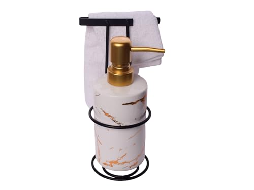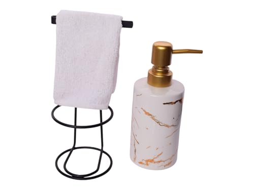Generic - Glass Soap Dispenser With Towel And Stand, 3 Pieces - Off White