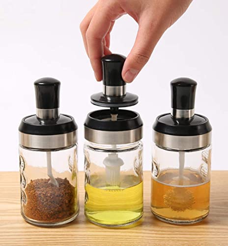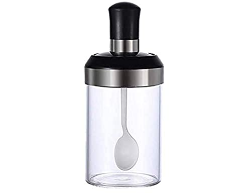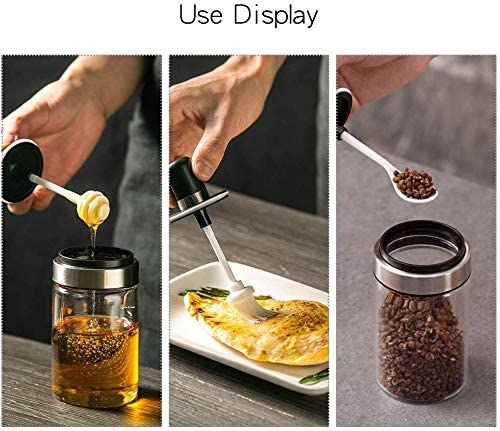 MSTY - برطمان زجاجي فارغ مزود بغطاء محكم عازل للهواء وملعقة مزج سعة 210 مل - 7.05 اونصة للتوابل او الزيت العسل البهارات بمعلقة