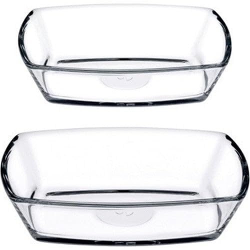 Generic - Glass Square Bowl, Clear, Set of 2, Dessert Serving Dish (8.6x12cm) & Rectangular Plate (12x18cm)