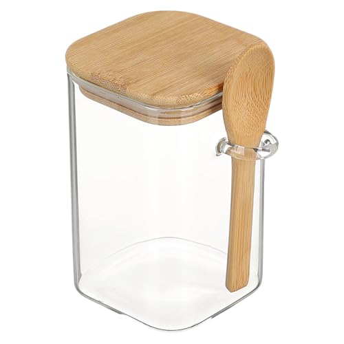 Generic - Glass Storage Canister with Bamboo Lid and Spoon, Square Kitchen Container, Clear Glass and Natural Wood