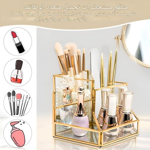 Generic - Glass storage for cosmetics, makeup brush holder-aesthetic makeup organizer with glass containers and brush holders for ultimate convenience