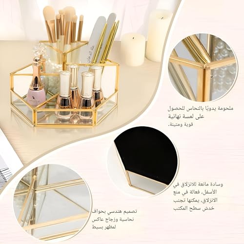 - Add a touch of elegance to your vanity with this stylish organizer. Its decorative appeal functions not just as storage but also as a sophisticated accent piece that enhances the aesthetic of your space. The sleek design blends seamlessly with any decor style, transforming your beauty routine into an upscale experience.