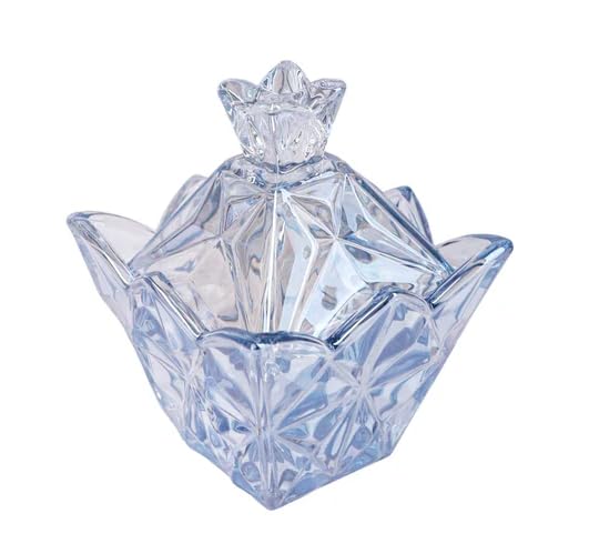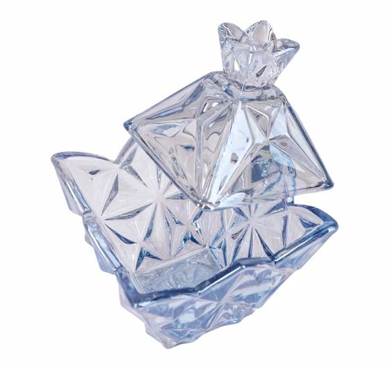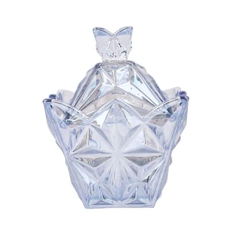 Generic - Glass Sugar Bowl with Lid, Crystal Cut Design, Blue Tinted