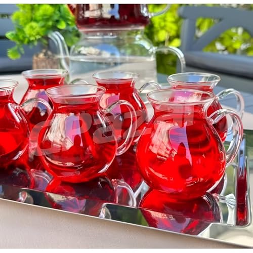 - The Turkish Tea Set includes 6 pieces of extra-large borosilicate tea glasses, each with a capacity of 285.0 milliliters. This set is perfect for tea enthusiasts who appreciate a larger serving size, allowing for extended tea sessions without the need for constant refills.