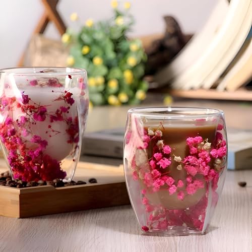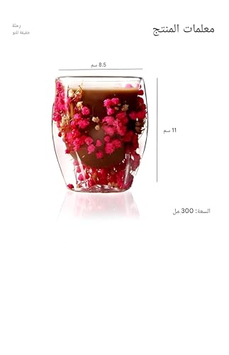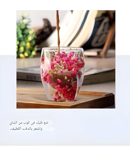 Generic - كأس حراري زجاج - مزدوج الجدار مع ورد مجفف داخلي، يحافظ على حرارة المشروبات الساخنة حتى 150 درجة مئوية ويقاوم البرودة حتى -12 درجة، بسعة عملية 300 مل (1 قطعه)