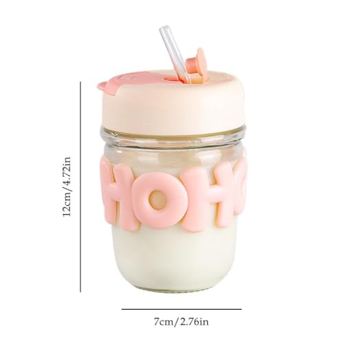 Generic - Glass Tumbler with Straw and Leakproof Lid, 350ml Multipurpose Drinking Cup for Hot and Cold Drinks, Tea, Coffee, Fruit Juices (Plan A) (White x Pink)