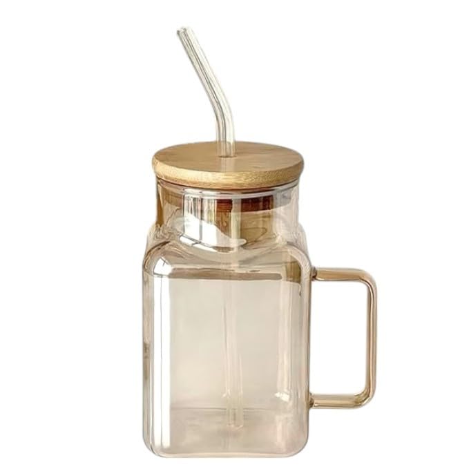 Generic - Glass Tumbler with Wooden Lid and Reusable Straw – Stylish Design with Ergonomic Handle (1)