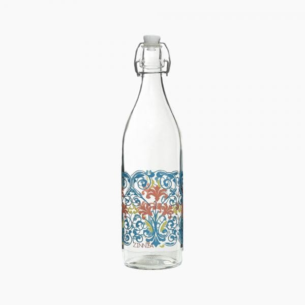 Generic - زجاجة مياه زجاجية بنمط زخرفي، غطاء علوي متارجح، شفافة