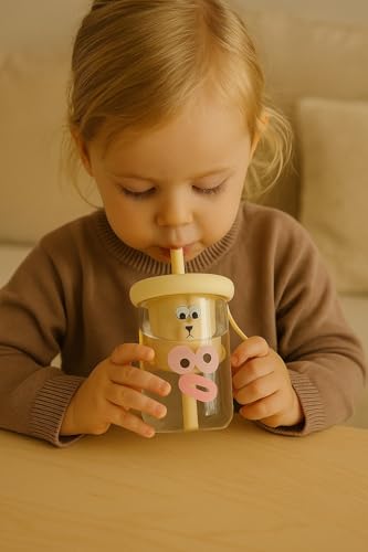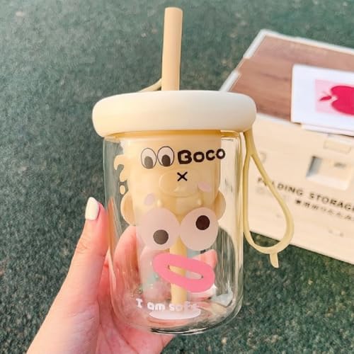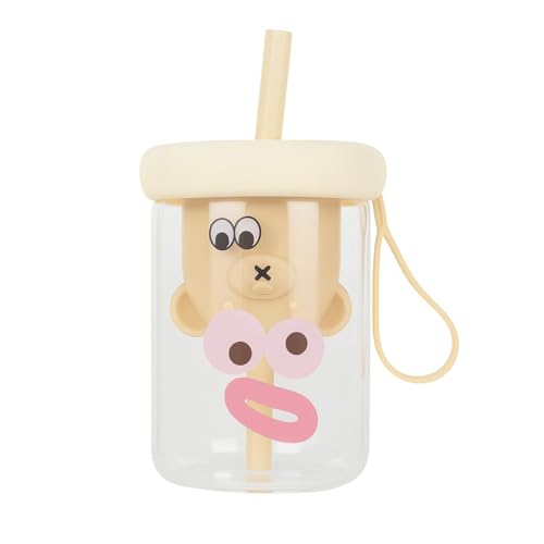 Generic - زجاجة مياه زجاجية مع شفاطة وغطاء، مقاومة للتسرب وخالية من مادة بيسفينول أ، كوب مصفاة للعصير والحليب والشاي ومزودة بسوار، زجاجة بسعة 480 مل، لون بيج