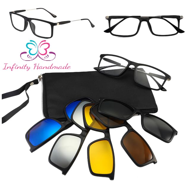 Generic - Glasses Frame 6 In 1 Men Women Polarized Optical Magnetic Sunglasses Clip on Magnet Prescription Model M from Seller INFINITYHANDMADE Only