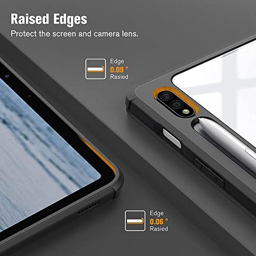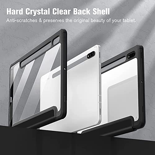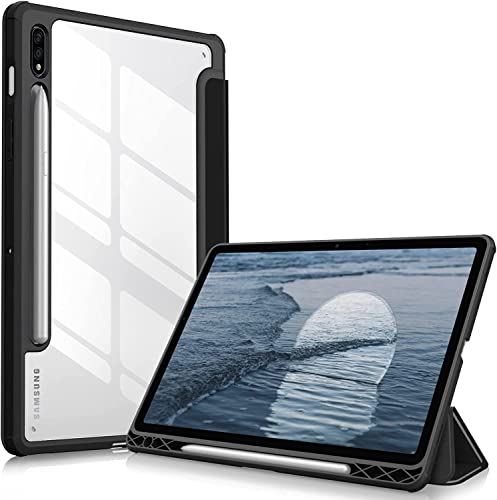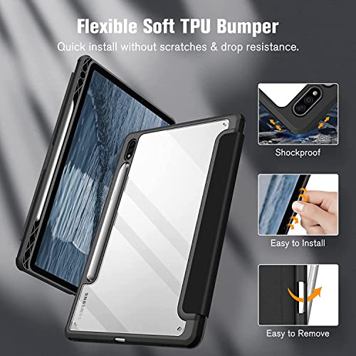 glassology - Glassology Hybrid Slim Case for Samsung Galaxy Tab S8/Tab S7 with S Pen Holder Shockproof Cover with Clear Transparent Back Shell Auto Wake/Sleep and screen protector (Black)