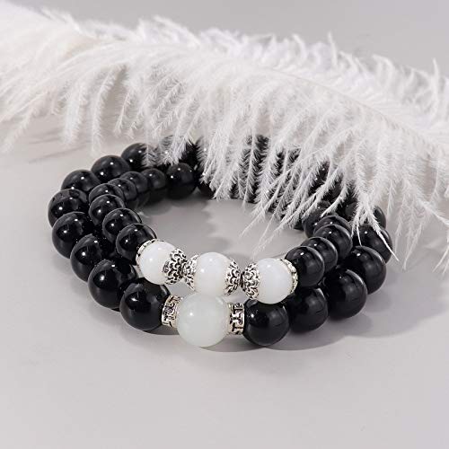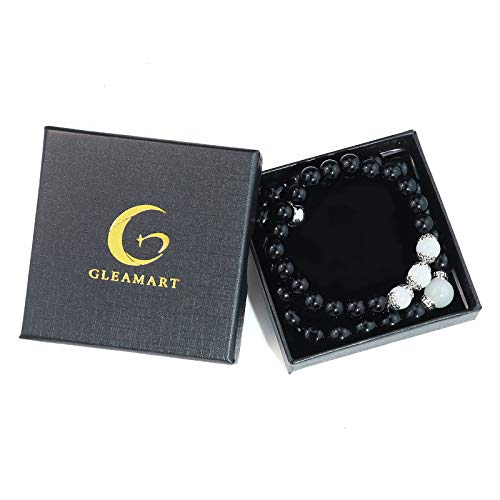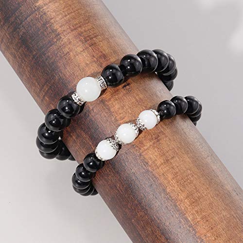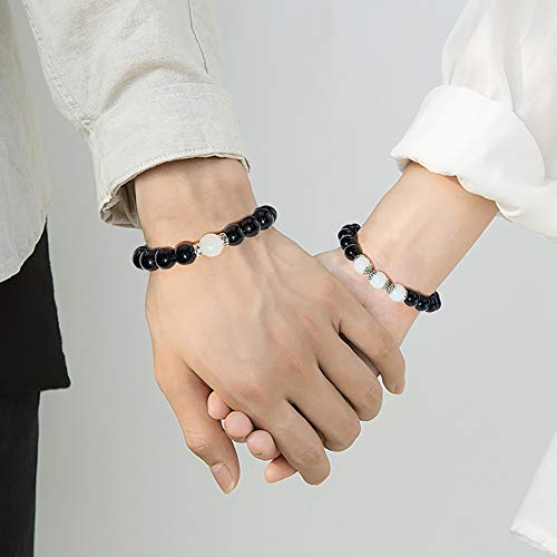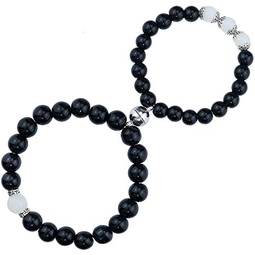Gleamart - جليمارت اساور خرز متطابقة مغناطيسية للزوجين للنساء والرجال علاقات العقيق الاسود مجموعة 02