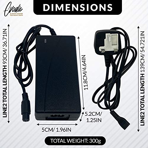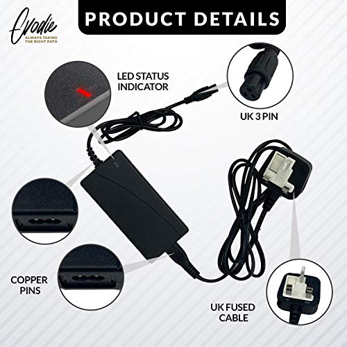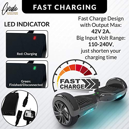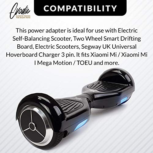 Glift - شاحن عالمي ممتاز لسكوتر هوفر بورد ذاتي التوازن بعجلتين، قابس المملكة المتحدة، أسود
