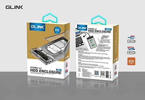 - جلينك حافظة هارد ديسك خارجية مقاس 2.5 انش تدعم محركات الأقراص الصلبة ساتا 2.5 انش إلى USB 2.0 ومحركات الأقراص ذات الحالة الصلبة حتى 4 تيرابايت. تصميم مبتكر شفاف يساعدك على تمييز القرص الصلب الموجود بالداخل. مصنوعة من مادة البولي كربونات الشفافة عالية الجودة.