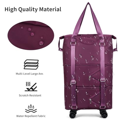 Gloyuda - شنطة دفل بعجلات من جليودا مقاس 29.2 انش قابلة للطي للسفر سفر شخصية كبيرة امتعة للرجال مع 4 عجلات دوارة للفصل ارجواني قماش أكسفورد غولودا