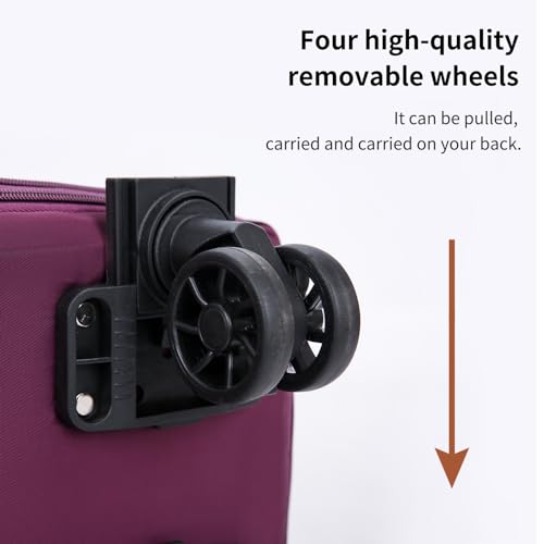 - 【سهلة الحمل】تحتوي حقيبة السفر الشخصية على 4 بكرات قابلة للفصل لسهولة الانزلاق والتحكم، وهي متينة وتدوم طويلاً. يمكن إزالة العجلات عند عدم الحاجة إليها، ويمكن حمل حقائب السفر على ظهرك أو على كتفك.