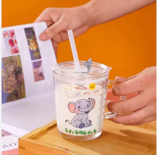 Gluck for Trading and Supplies - كوب زجاجي شاليمو بتصميم فيل مع شفاطة من جلوك
