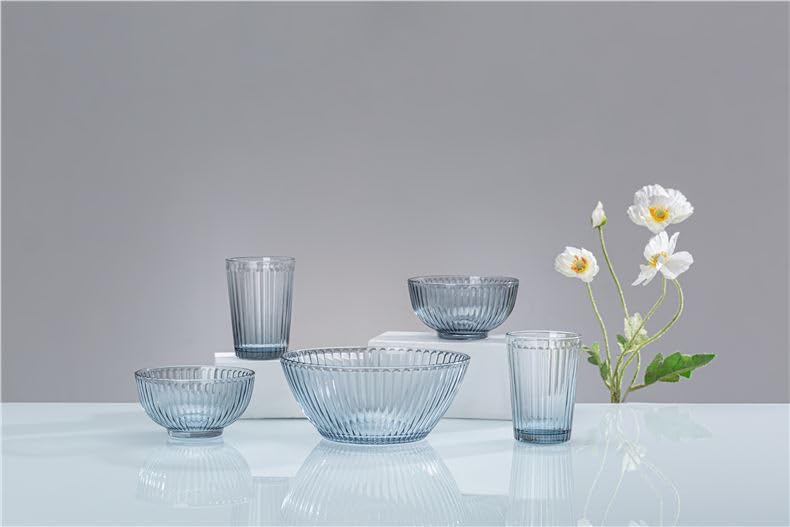 Gluck for Trading and Supplies - طقم عشاء مصنوع من الزجاج يتضمن كوبين و3 أطباق من جلوك، أزرق شفاف موديل GG-1076