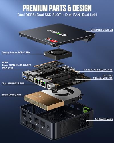 - 【32 جيجابايت DDR5 ثنائي القناة 2 تيرابايت SSD توسيع الفتحة المزدوجة】مركَّب مع DDR5 32 جيجابايت RAM 5600 ميجاهرتز (قناة مزدوجة 16 جيجابايت)، يدعم الكمبيوتر الصغير نوك بوكس K8 التوسع إلى ذاكرة RAM 256 جيجابايت. يتميز بـ 2 تيرابايت M.2 2280 PCIe 4.0 SSD، يدعم توسيع الفتحة المزدوجة إلى 2 × منفذ الملحقات الإضافية السريع 4.0 2 تيرابايت SSD حتى 8 تيرابايت. (التحديثات غير متضمنة)