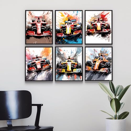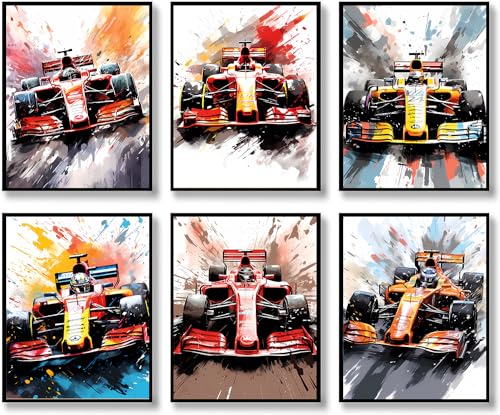 GMLXCX - GMLXCX Formula 1 Racing Car Wall Art Formula Racing Poster Race Car Wall Decor Set of 6 Unframed (8''x10'') Supercar Poster Man Cave Boys Room Wall Decor