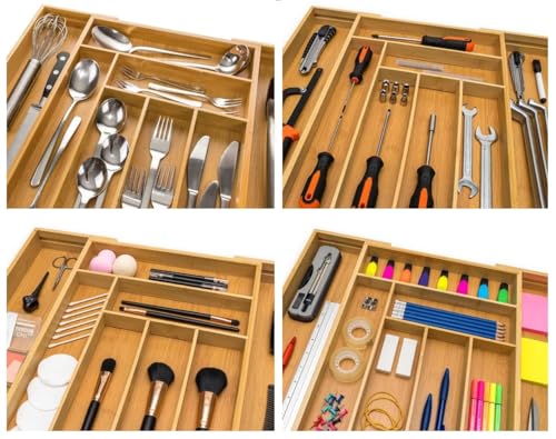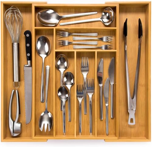 GMMH - GMMH Cutlery Tray Cutlery Tray Kitchen Organiser Drawer Insert Natural Wood (45 x 43 x 5 cm)
