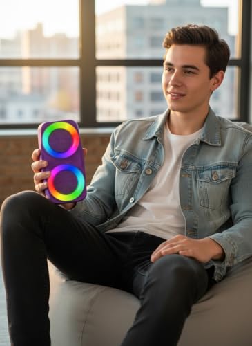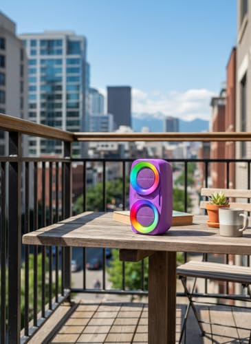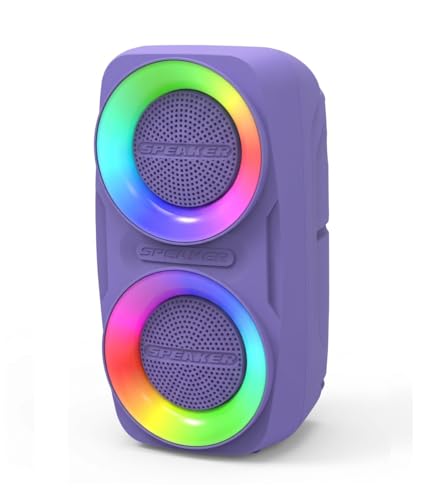 Generic - مكبر صوت بلوتوث لاسلكي محمول GN-18 مع إضاءة RGB ملونة وصوت ستيريو قوي - مشغلات مزدوجة 3 بوصة وبطارية 1200mAh - يدعم USB/TF/FM - سهل الحمل بتصميم عصري (بنفسجي)