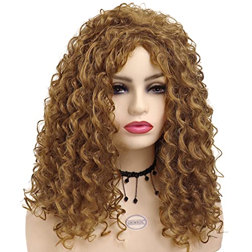 GNIMEGIL - باروكة شعر طويل مجعد اشقر ومموج، شعر مستعار افريقي امريكي صناعي للحفلات التنكرية ولعب الادوار من جينميجيل