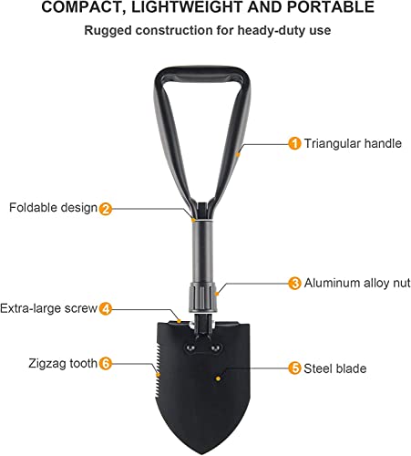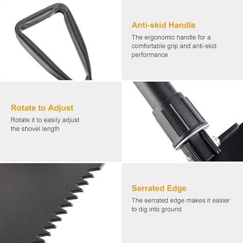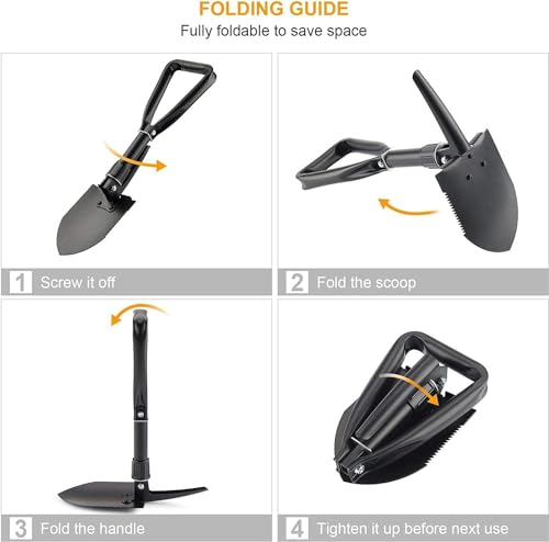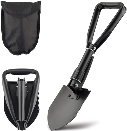 GO2CAMPS - GO2CAMPS Portable Folding Shovels, Collapsible Camping Shovel with Nylon Carrying Pouch and High Carbon Steel Handle, Compact and Multi-Functional Tool