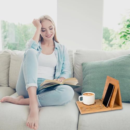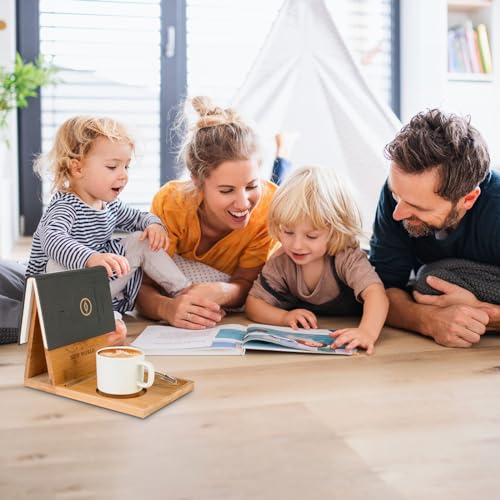 - This Bamboo book nook reading valet is designed with cup holder and glasses holder ,also use it as a tablet,iPad,phone Kindle stand,allowing you to enjoy a hot beverage while indulging in your favorite book.